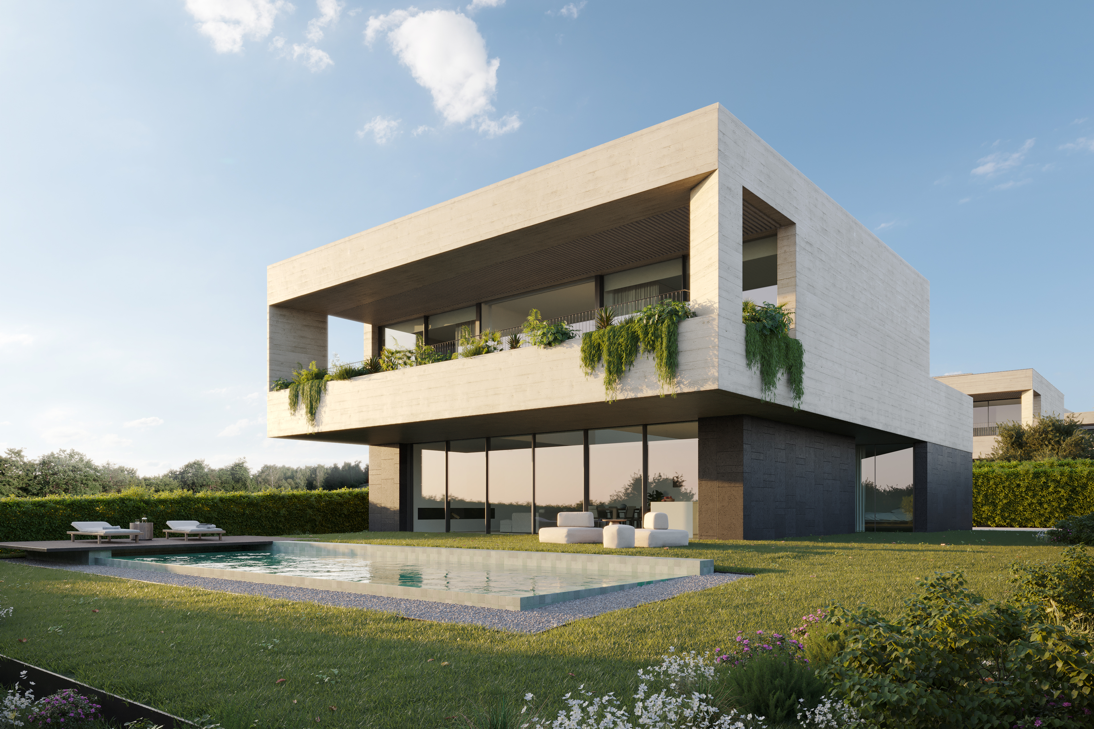 This spectacular project offers a range of contemporary 2 storey villas with an open plan living / dining area / kitchen flowing seamlessly onto a south facing sun terrace or with access to the private pool area and the gardens.All villa designs are unique from each other, some with living areas on the first floor to maximize the views, others with the living areas on the ground floor that combine with access to the gardens and pool area.